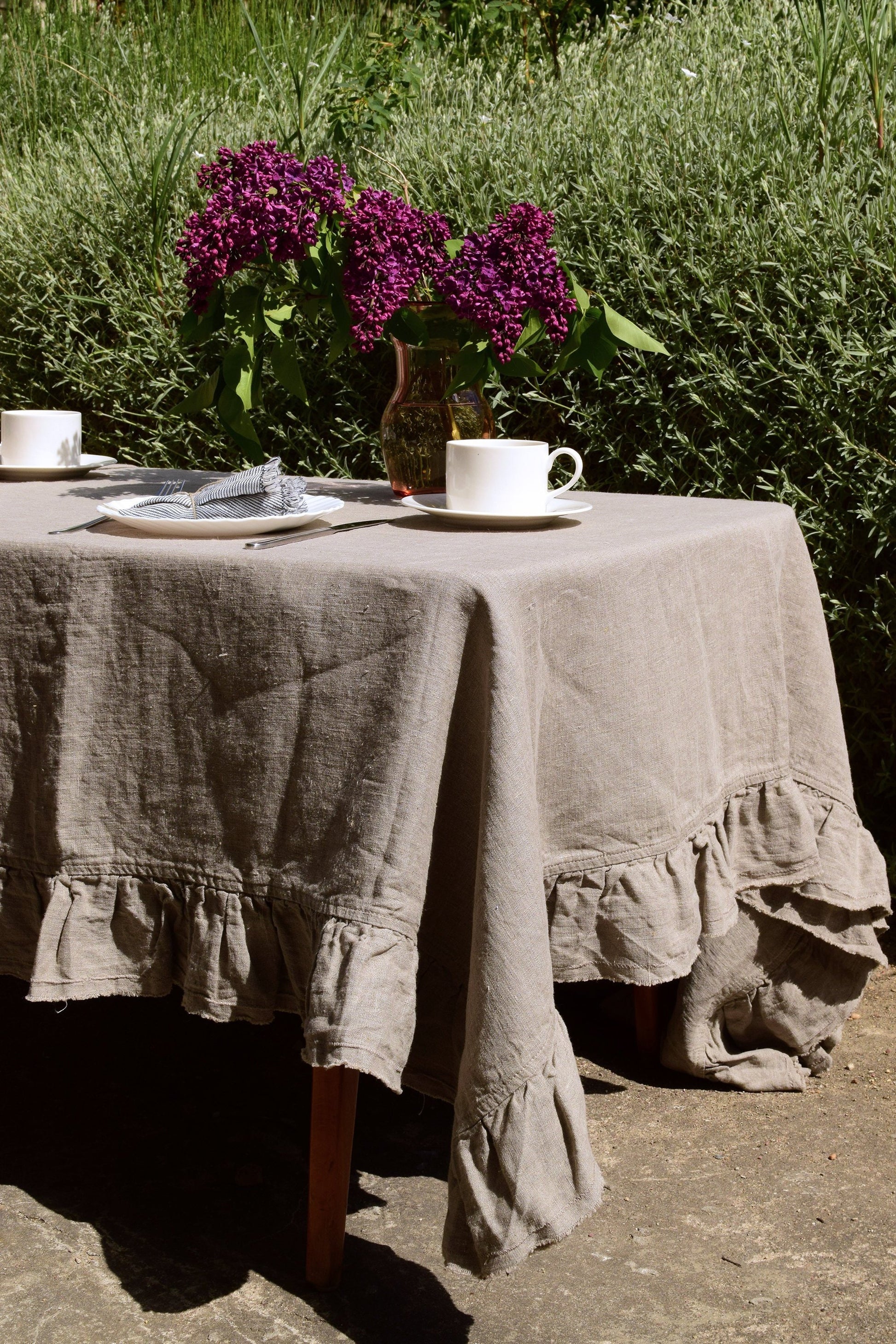 100% linen tablecloth with ruffles