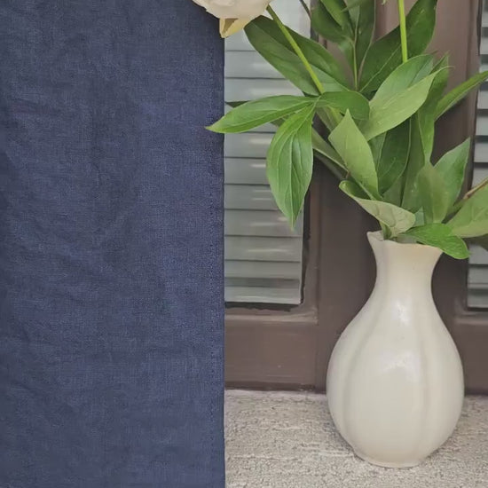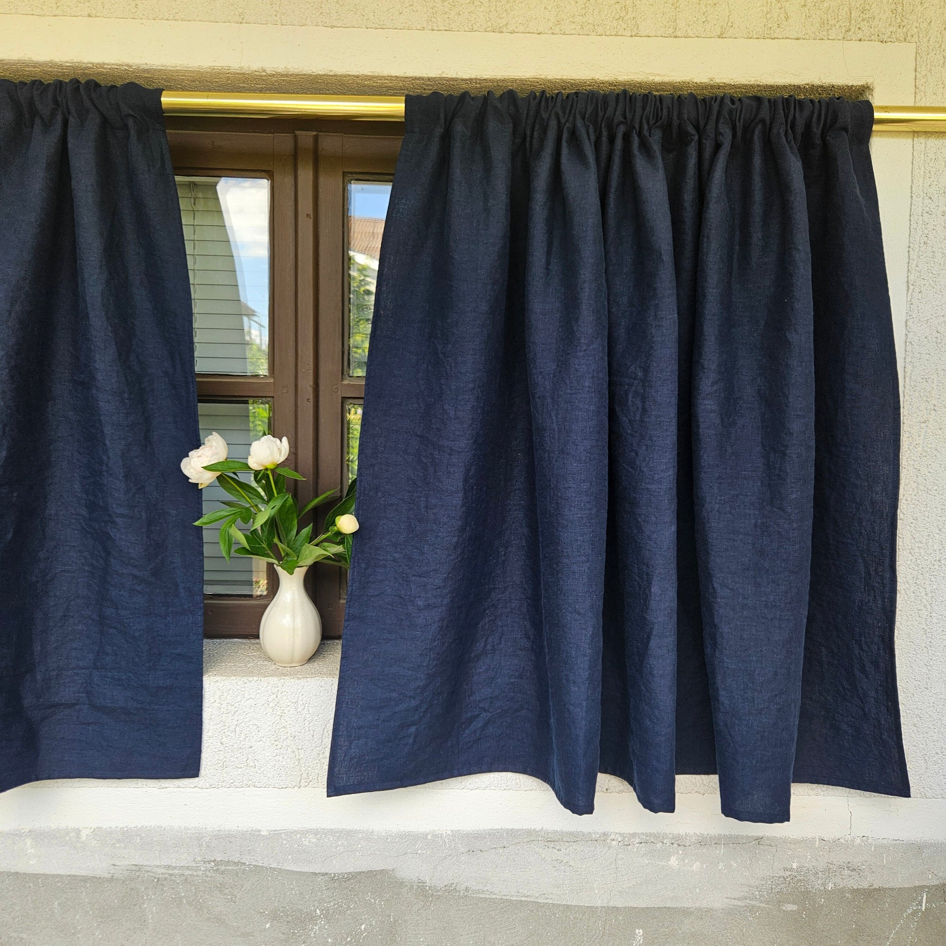 Curtains 100% Linen PREWASHED in navy blue, window panel kitchen Living room farmhouse curtains, grain sack flax Bedroom window panel