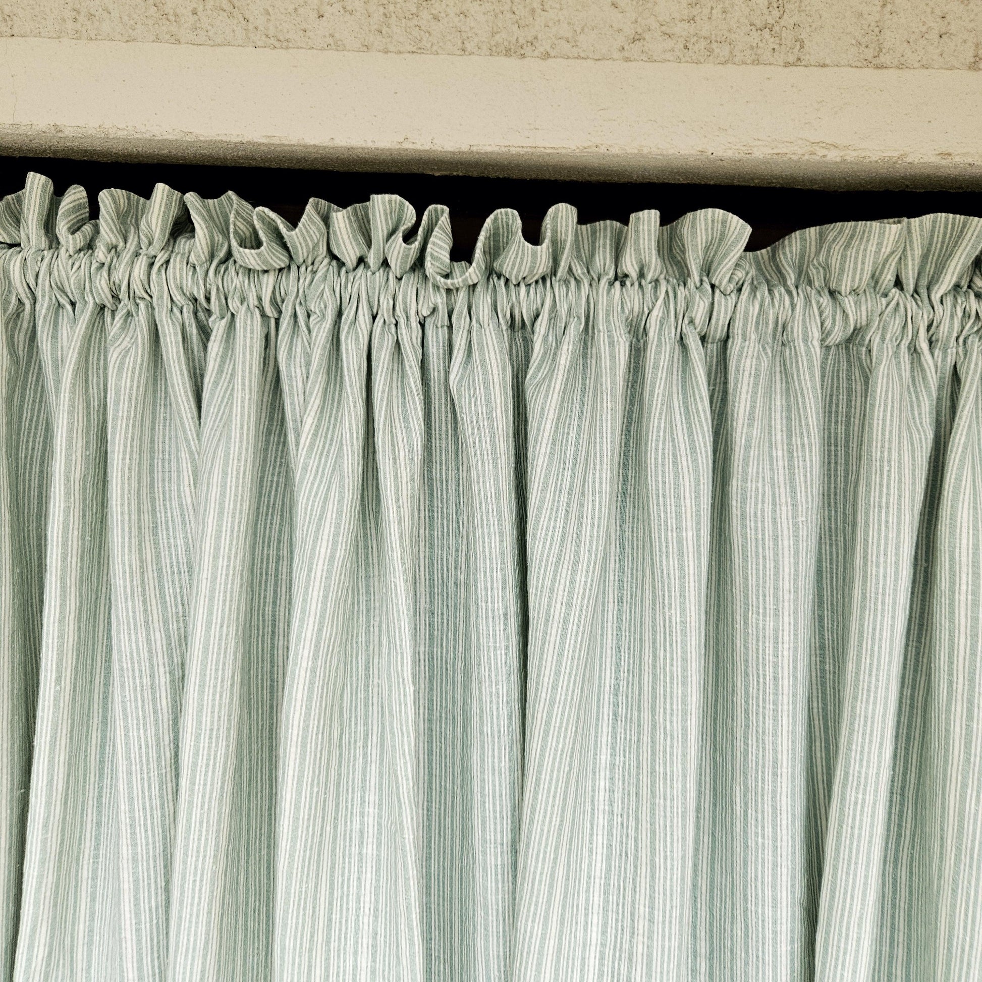 Curtains 100% Linen with French striped block print green pattern PREWASHED - kitchen Living room farmhouse window panel french linen