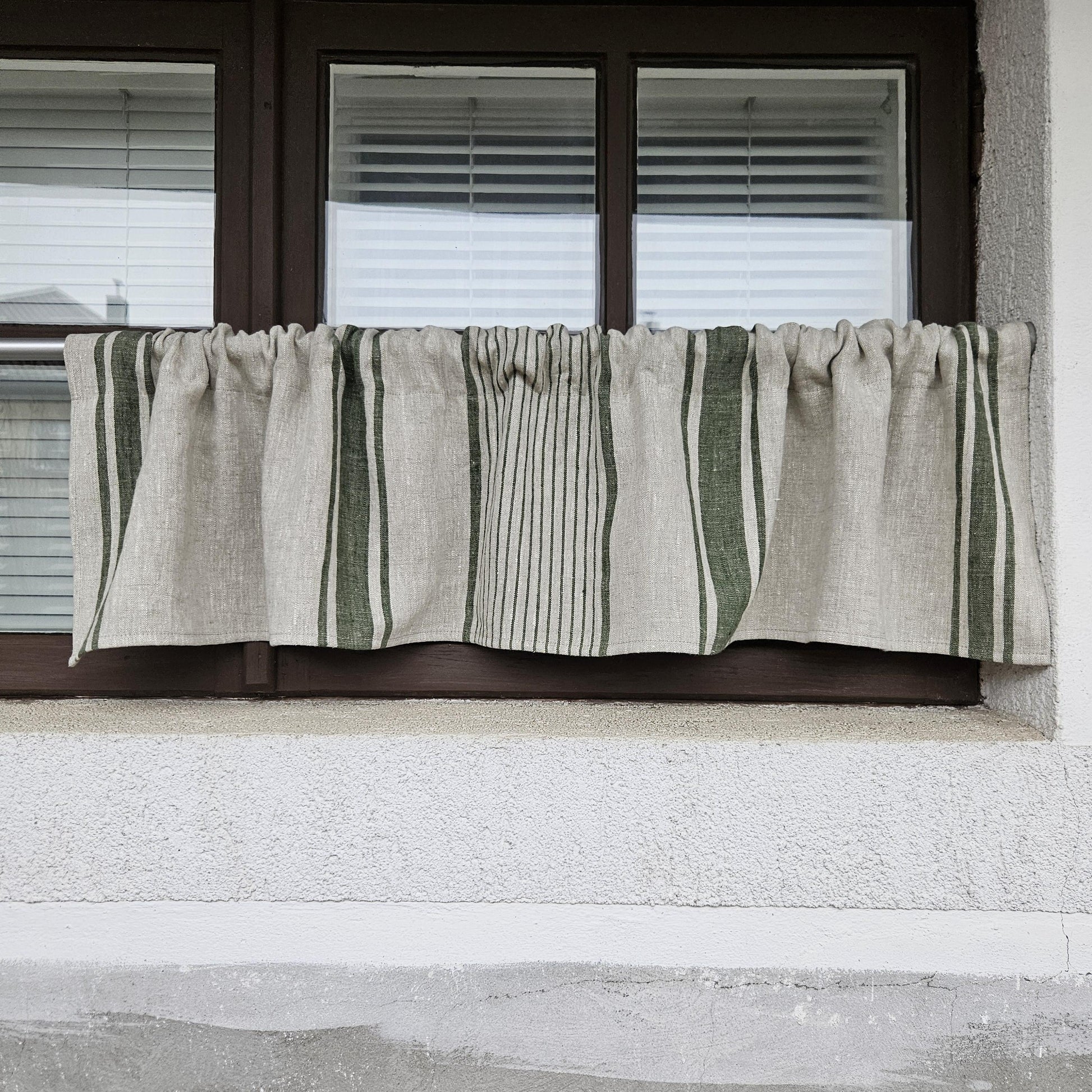 French striped linen Curtains in custom size - window panel for kitchen Living room farmhouse - Grain Sack green striped curtain