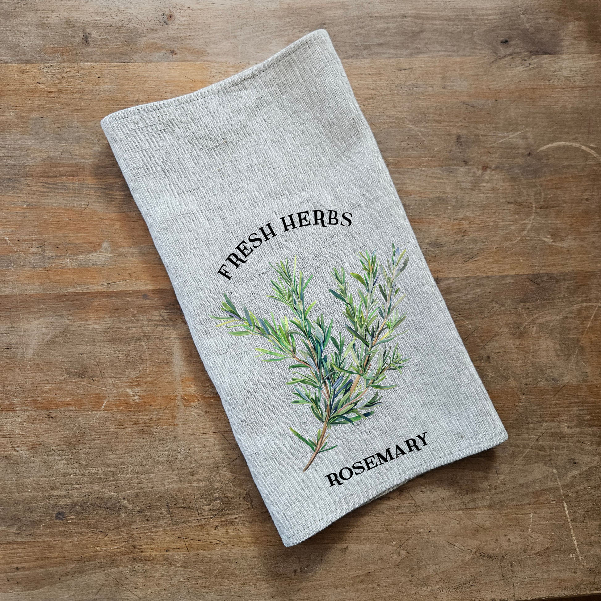 Hand Towels Tea with French country herbs - Farmhouse Floral greenery Décor Kitchen Dish Tea Towel - Rosemary Floral Tea Towel in linen