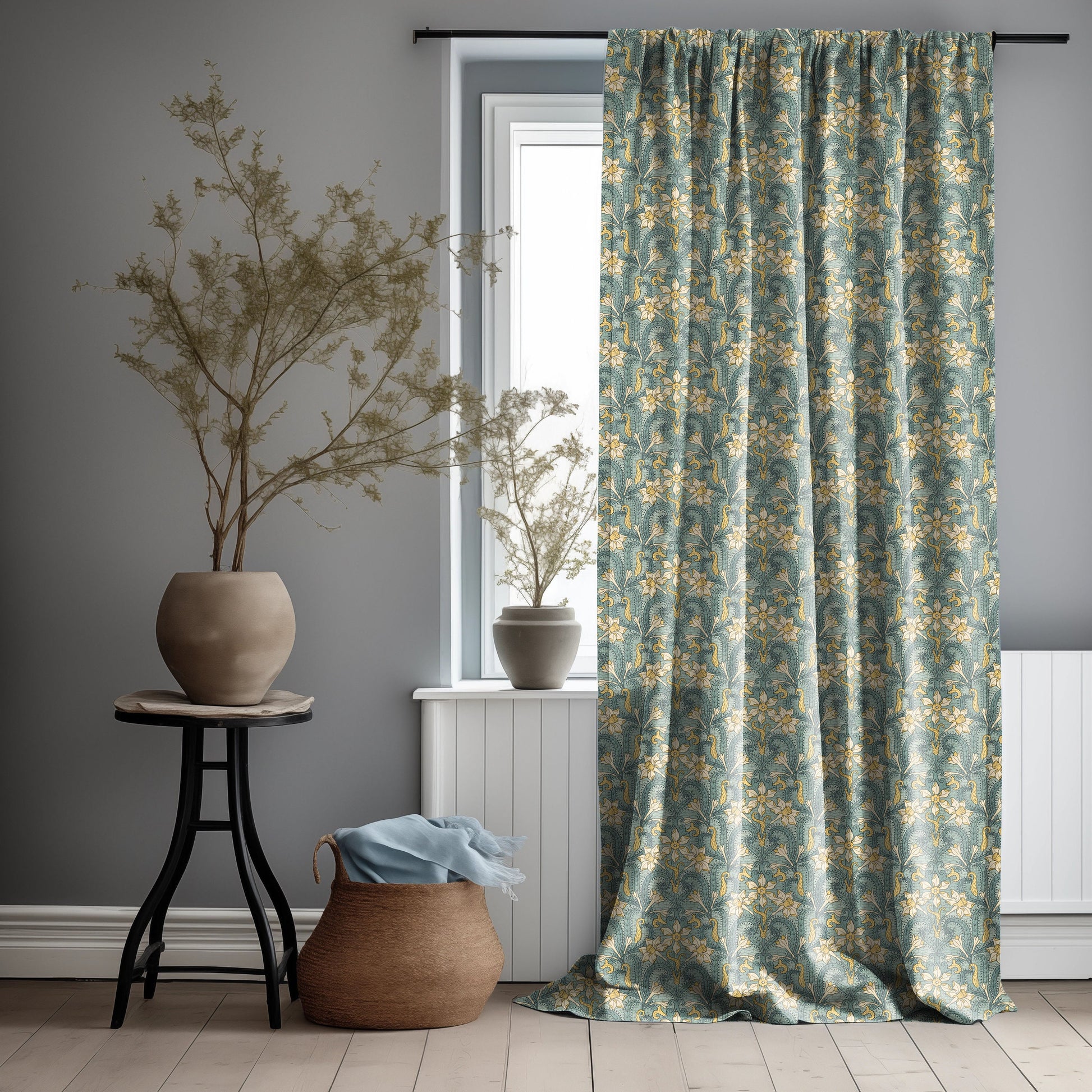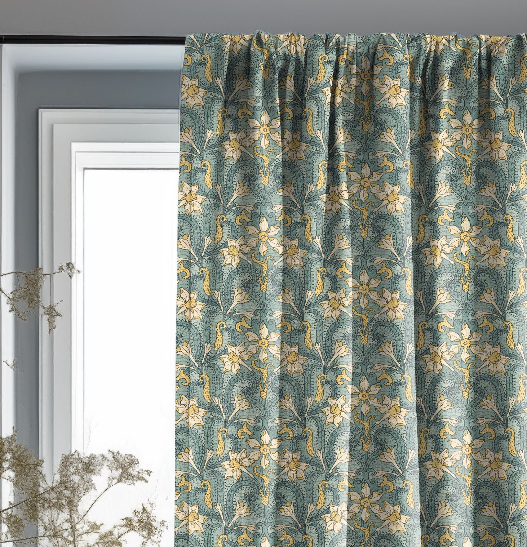 Jonquil Curtain Panel Maurice Pillard Verneuil, Floral Print Curtain Panels in custom size, Botanical Curtains for living room Art deco