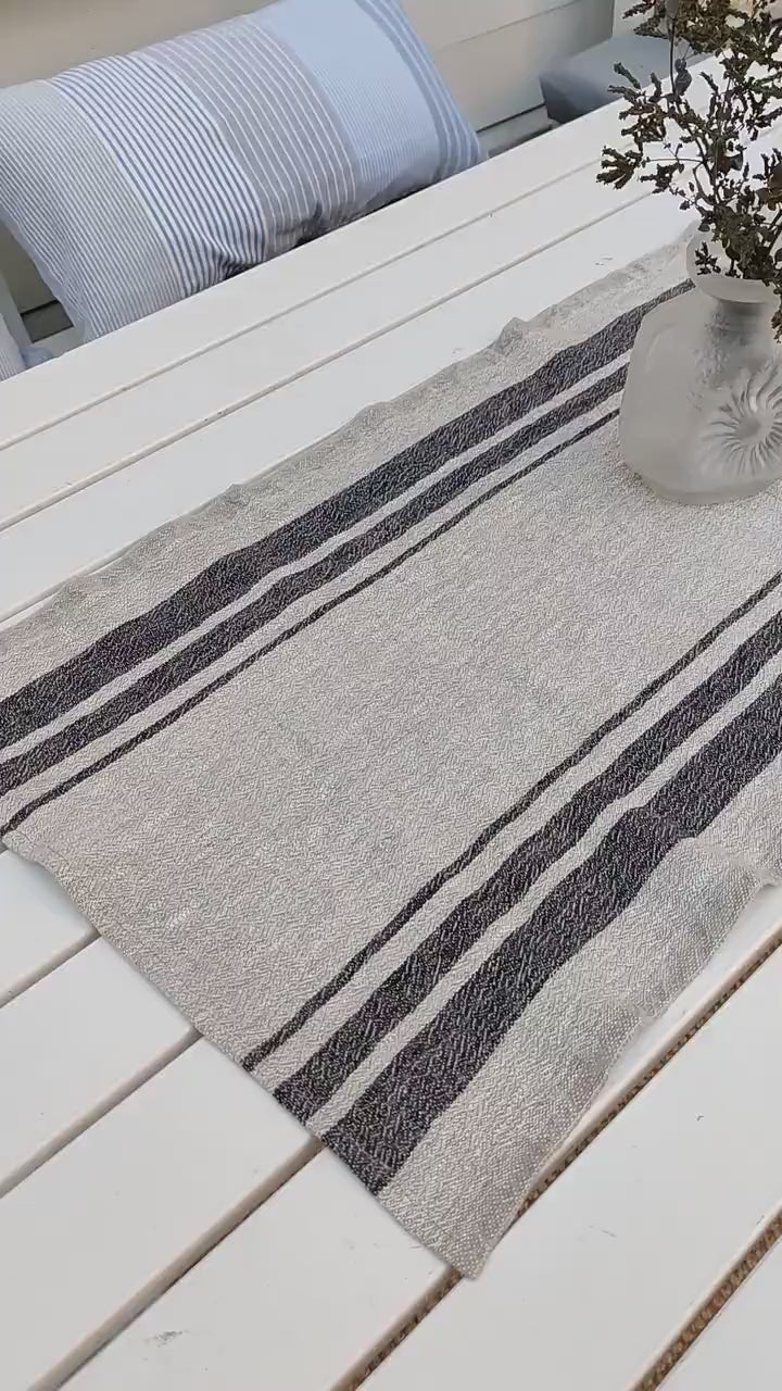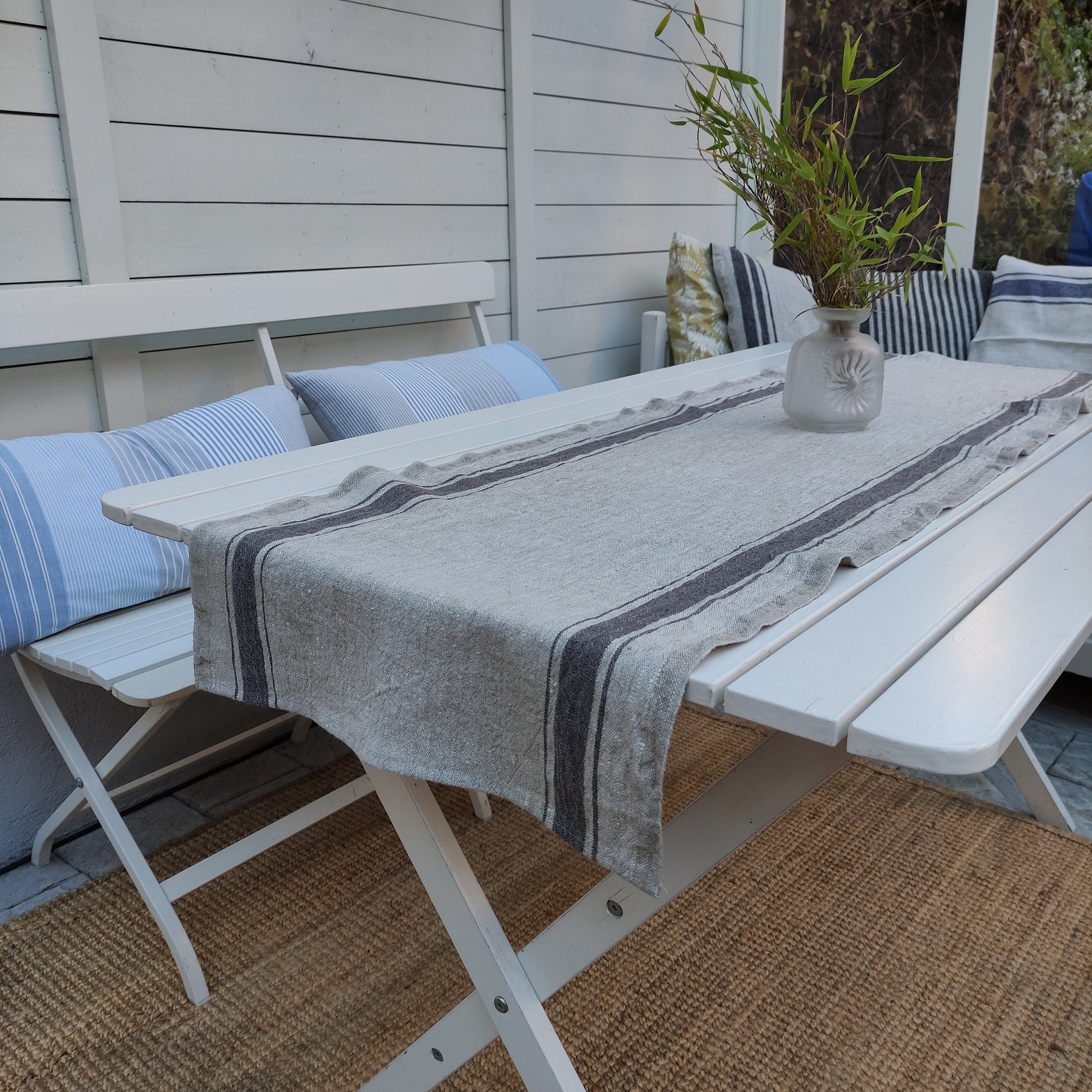 Perfect linen runner in striped linen. Made of heavy weight sack weave linen - it will last forever.