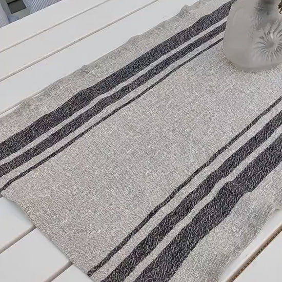 Linen runner - french sack linen - Grey black striped Rustic linen Cottage farmhouse country style linen -Stonewashed 100% linen rustic