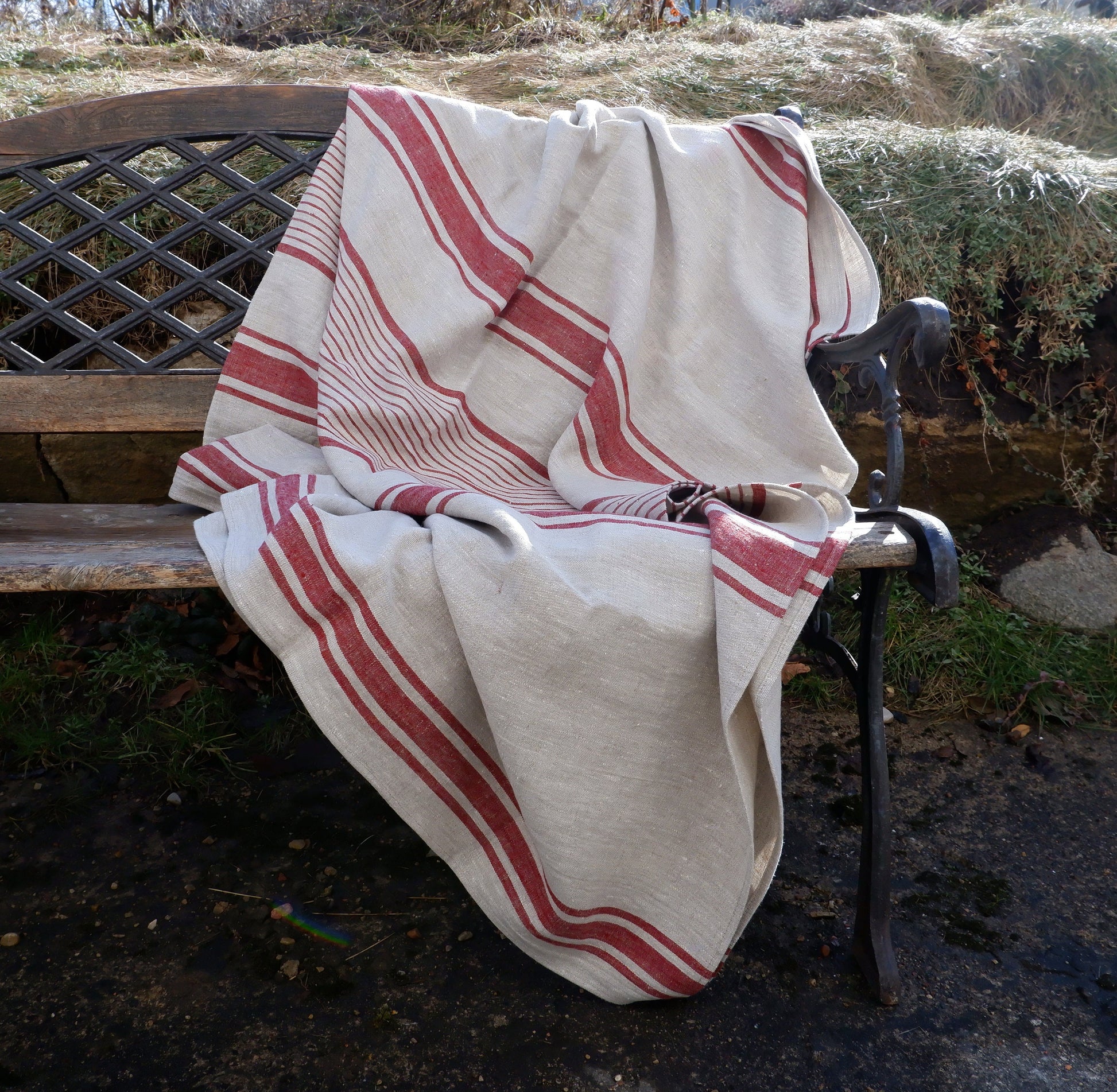 Stonewashed Natural Blanket Bedspread Bed Cover - striped flax - provence cottage coutrystyle Throw Alwayslovelinen 100% Linen