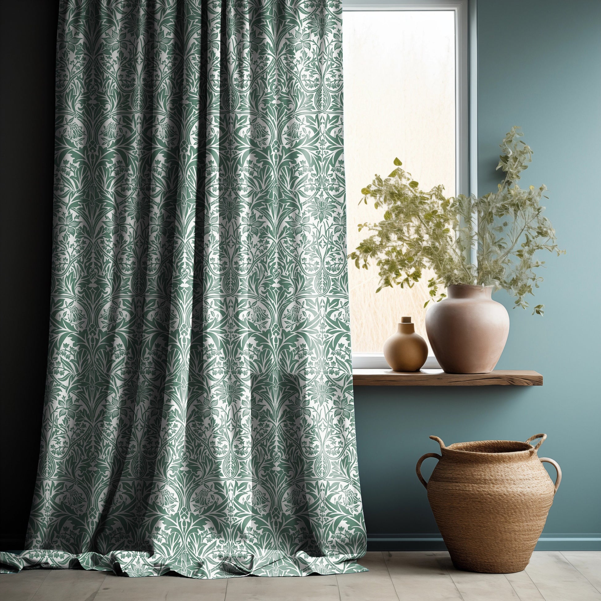 William Morris Curtain Panel Bluebell in green, Floral Botanical Blue Print Curtain Panels, Curtains for living room