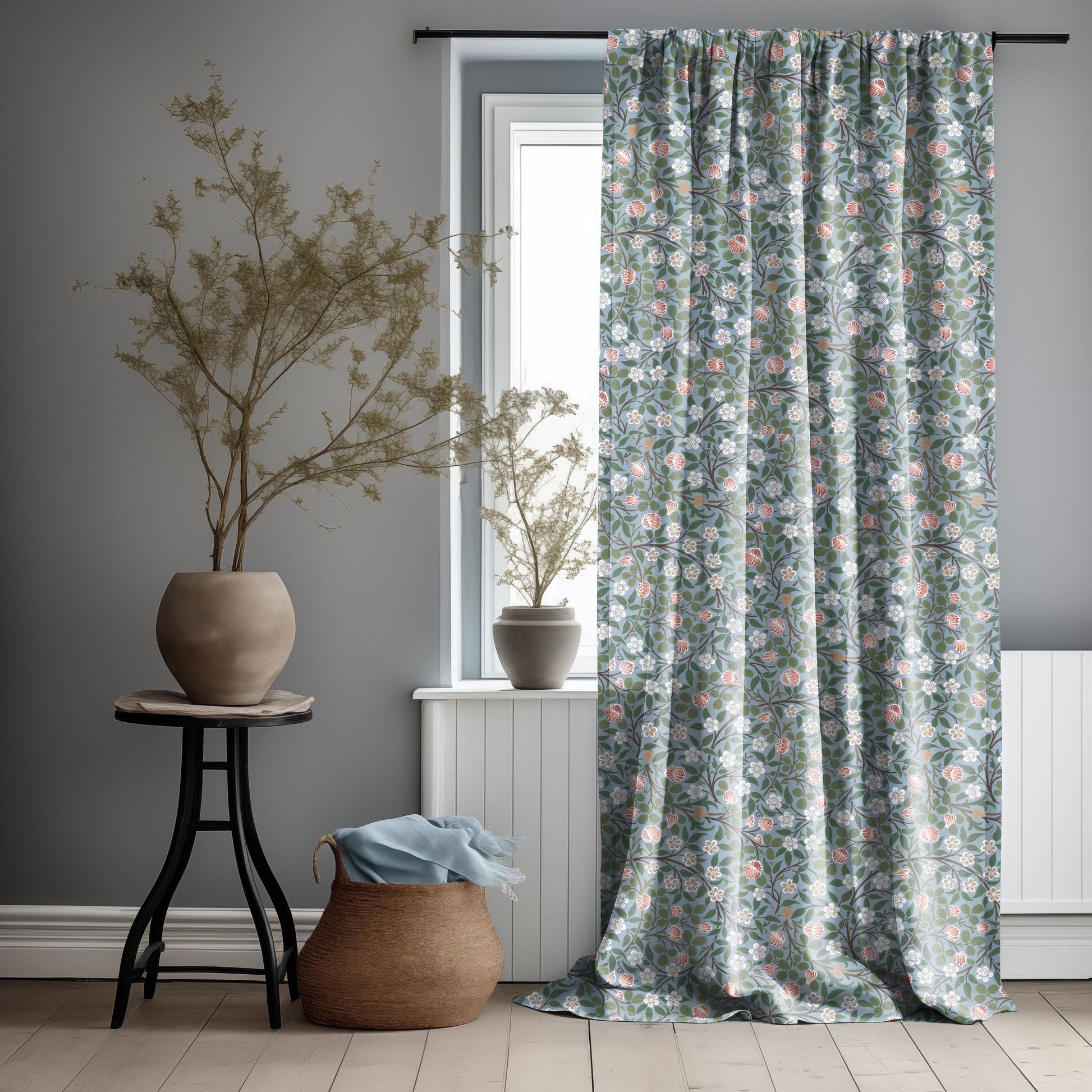 William Morris Curtain Panel Clover, Floral Botanical green Print Curtain Panels in custom size, Botanical Curtains for living room