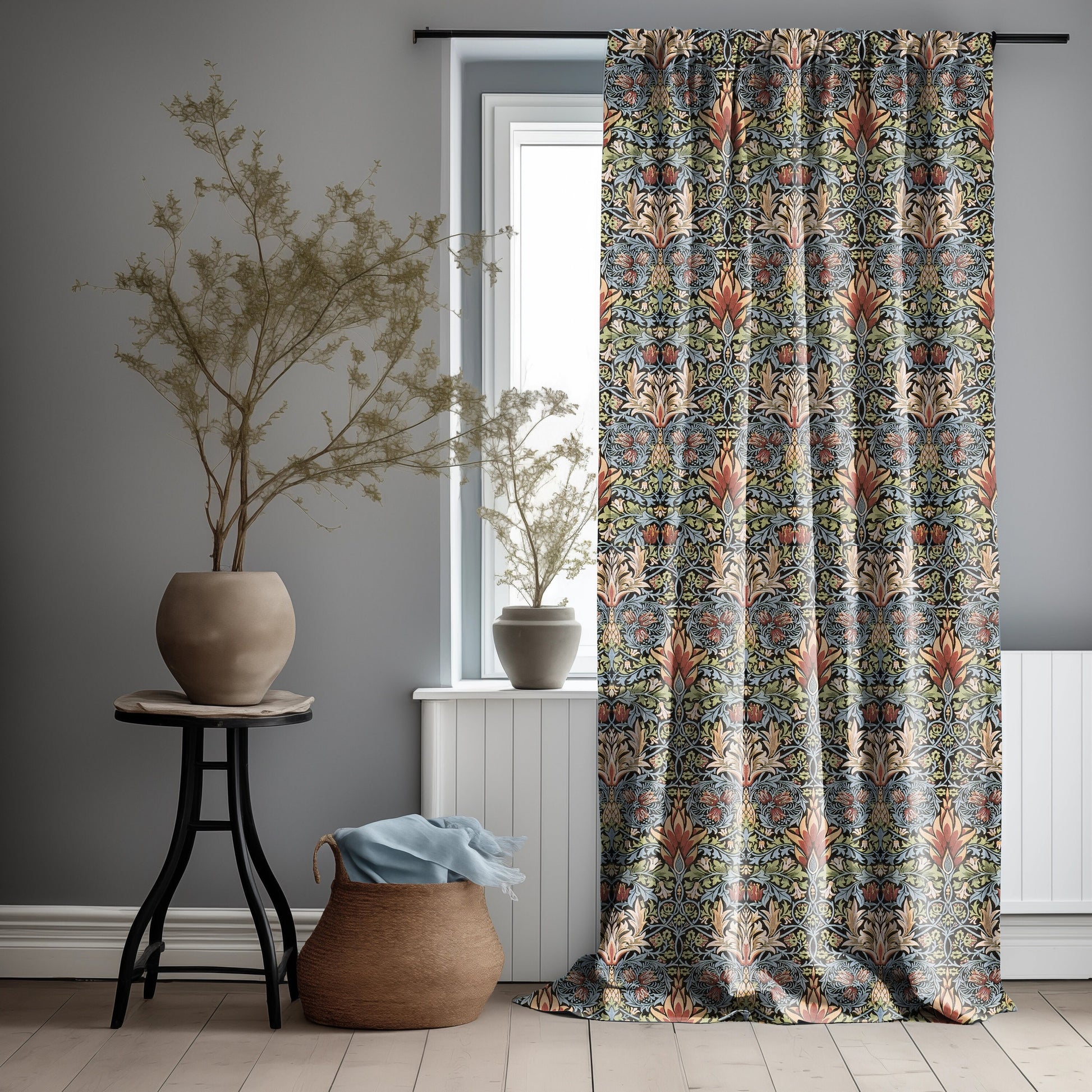 William Morris Curtain Panel Snakeshead, Floral Botanical Blue Print Curtain Panels, Curtains for living room