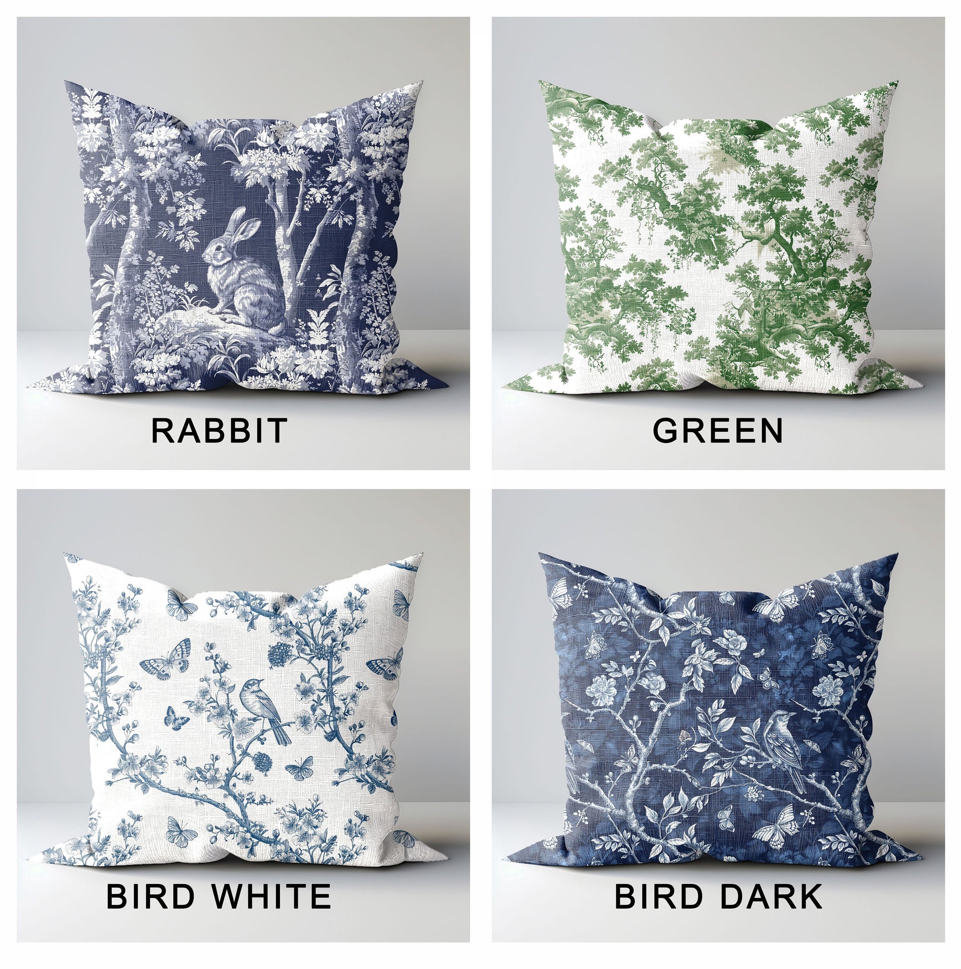 Designer blue Floral on Linen Pillow Cover, french toile de jouy Pillow, Farmhouse Botanical printed pillow on flax