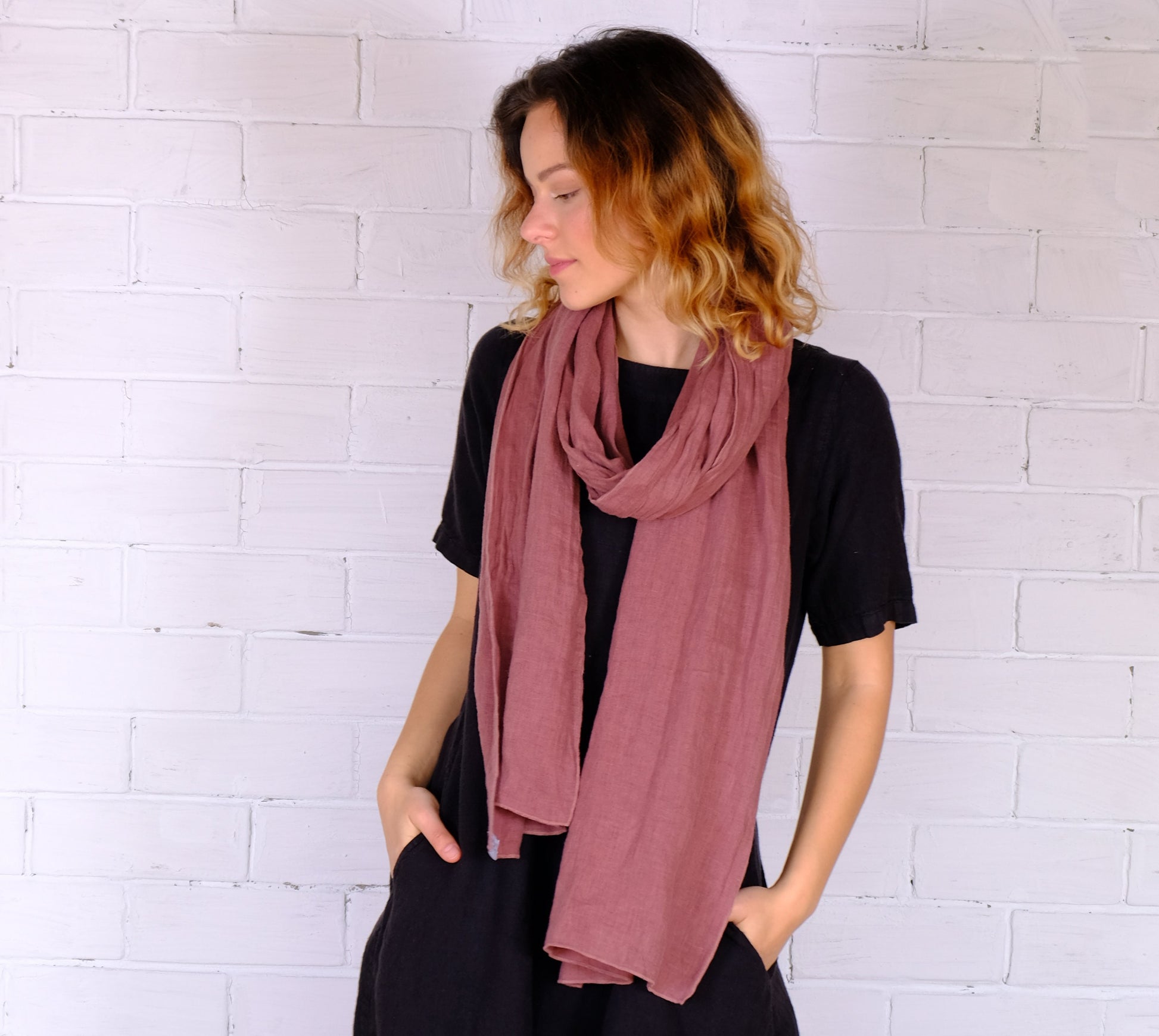 Unisex linen scarf in natural undyed linen
