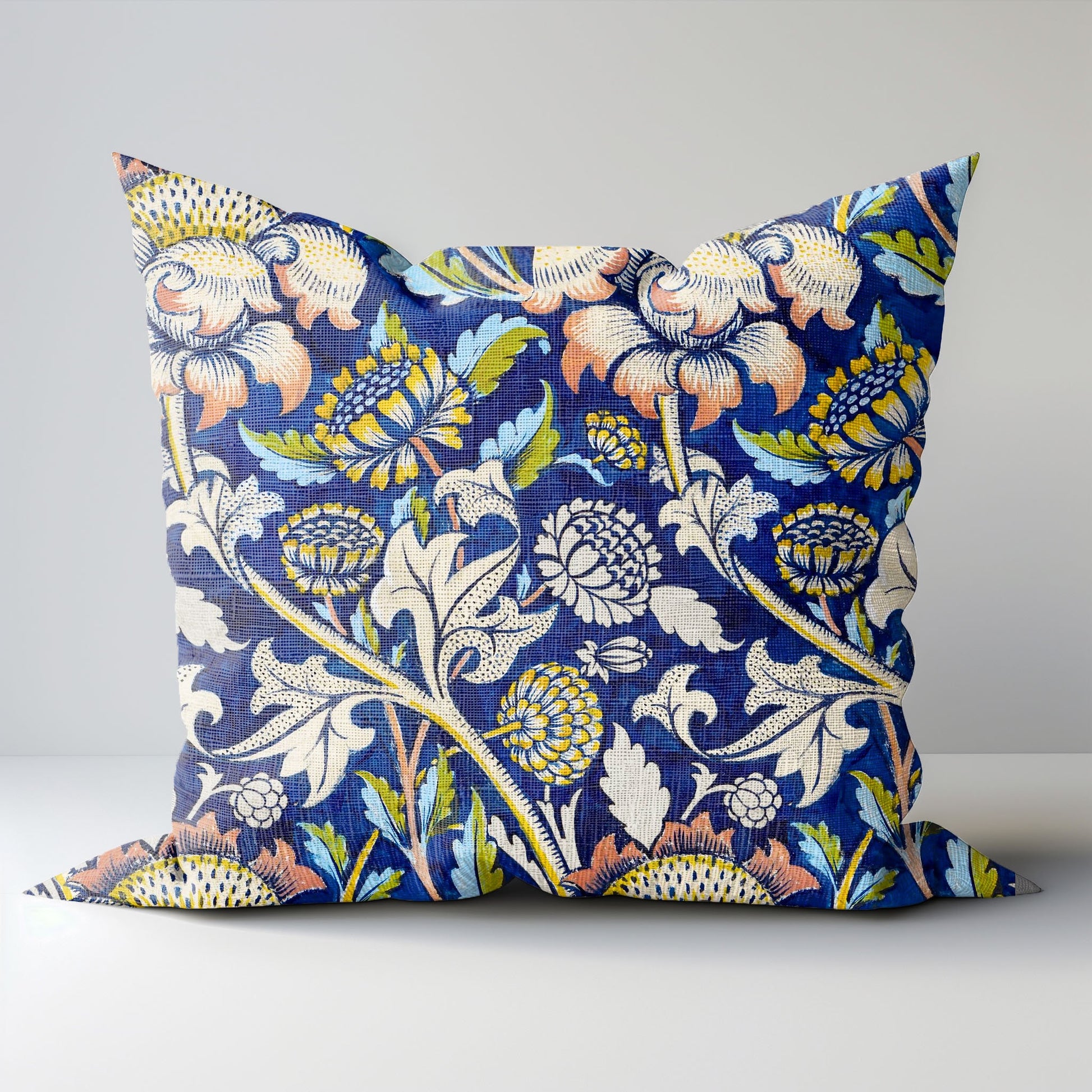 Modern linen Pillow Cover with William Morris WEY print , Art and Crafts Pillow case on linen for Coutryhome Victorian