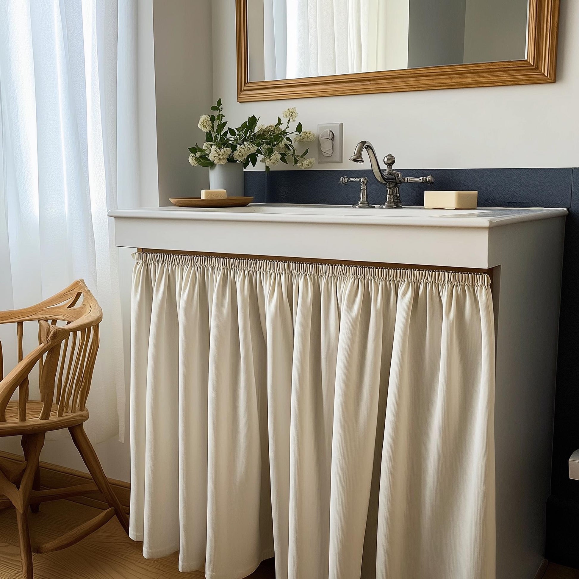 Custom Sink Skirt & Summer Fireplace Curtain – Easy Velcro Attachment